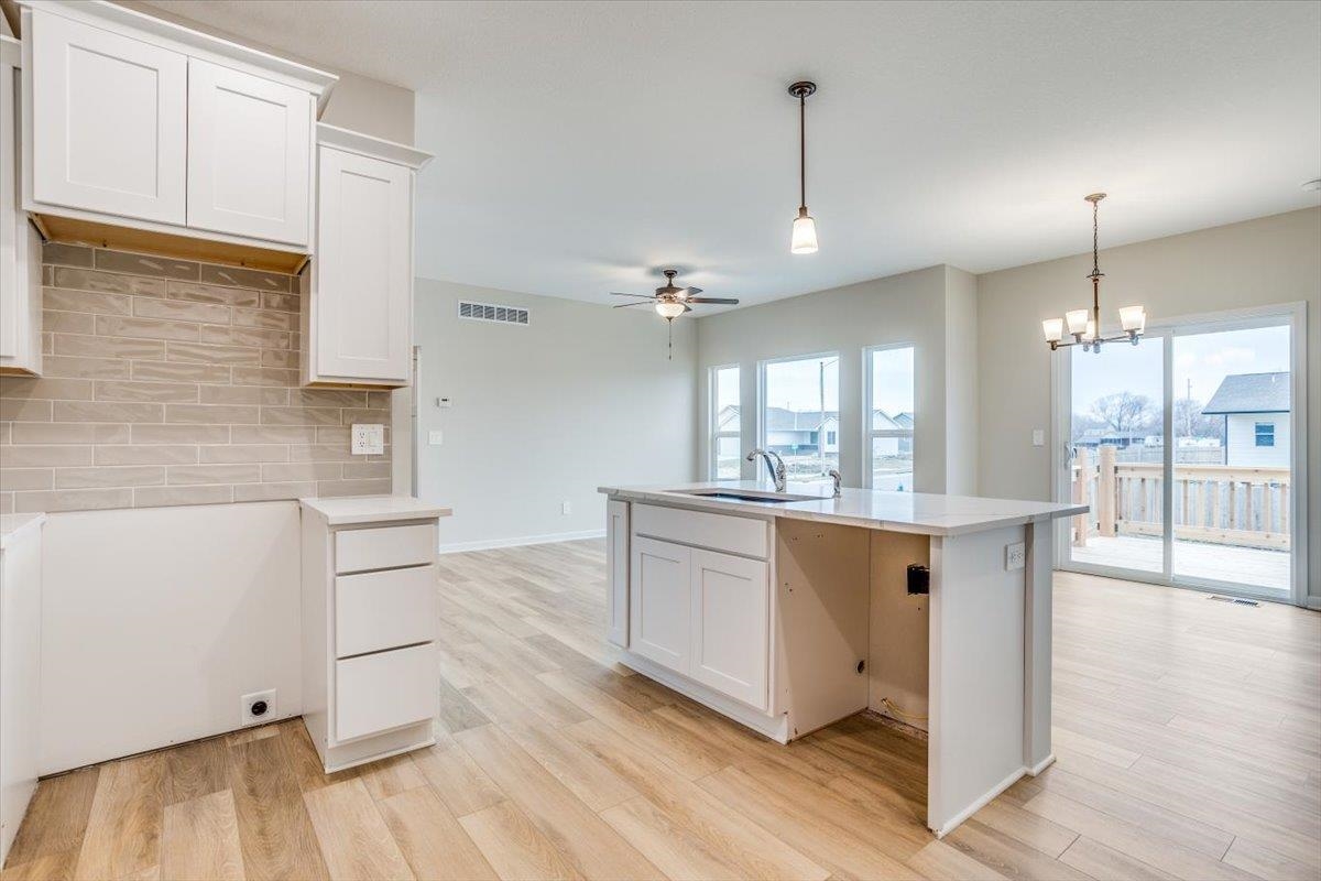 - Description: This MOVE-IN-READY Weston plan by Don Klausmeyer Construction is built in the newest phase of Prairie Creek in Andover. It's spacious, open and features 3-split bedrooms and 2 bathrooms on the main floor. The main living area and bedrooms feature luxury vinyl plank flooring, and the kitchen features staggered kitchen cabinets with crown molding, quartz countertops, a large island w/ an eating bar, and a walk-in pantry. Laundry is on the main floor as well. The master bath has a double vanity with two sinks and a large walk-in closet. Three-car garage, good-sized back yard with a deck. The full, unfinished daylight basement has interior walls framed for a 4th bedroom, a rec room, and a rough-in bath. Make it yours SOON and before someone else does! More spec homes and lots for custom builds are available! This office supports the WABA on-site registration policy. General taxes, special assessments, HOA fees, room sizes, & lot sizes are estimated. All school information is deemed to be accurate, but not guaranteed. Plan features may change without notice.