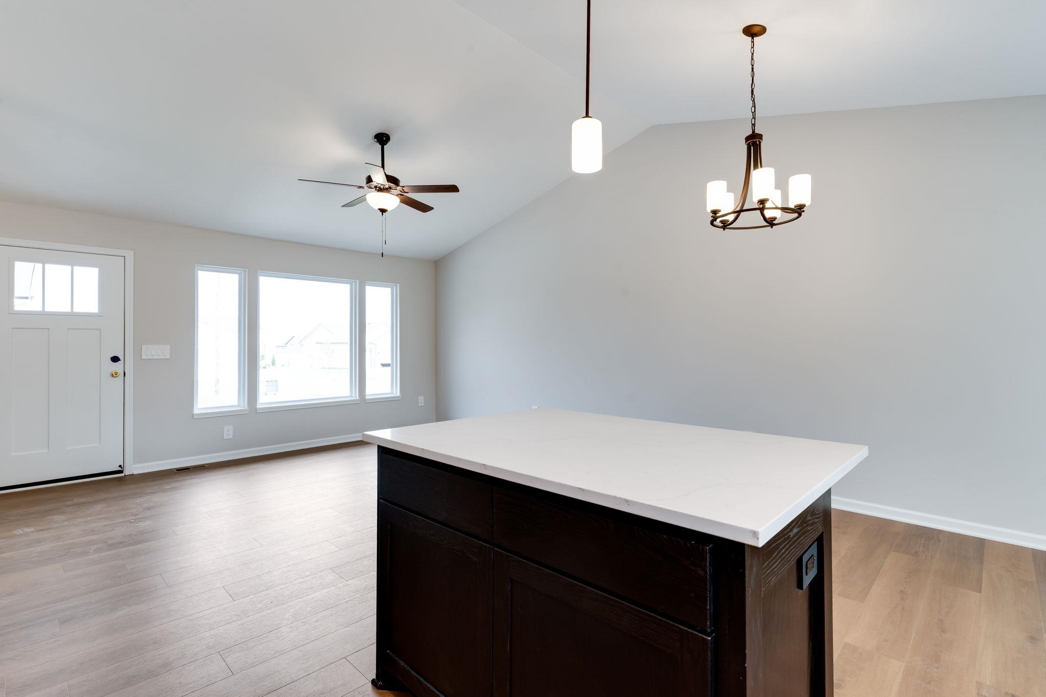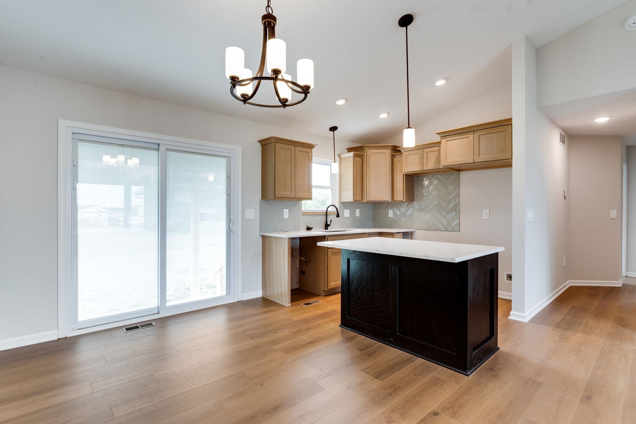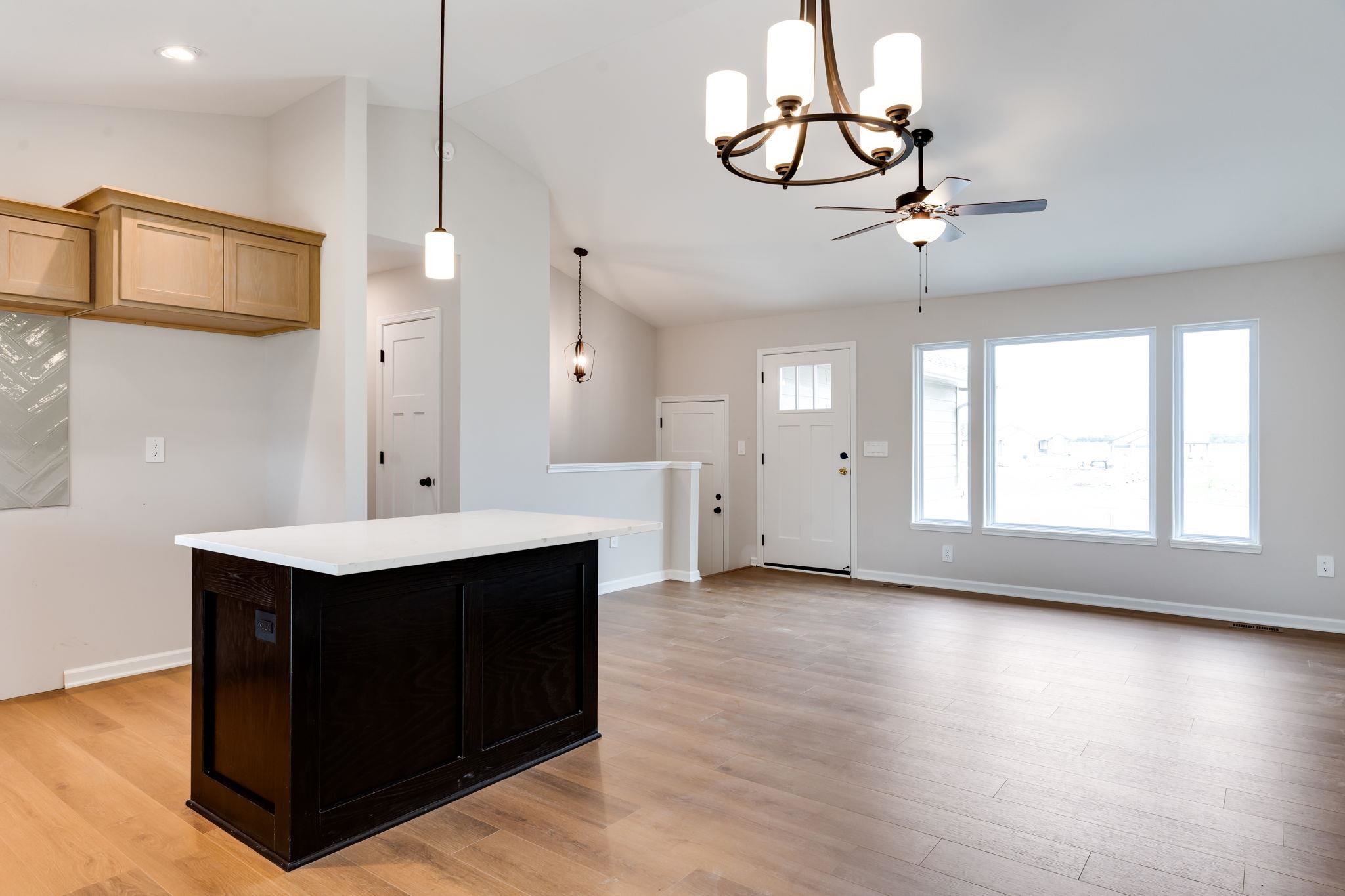 - Description: This NEW, move-in-ready home now include sprinklers, sod, and some landscaping (2 trees & front shrub bed)! Discover the charming Willow floor plan by Comfort Homes Inc, a beautifully designed home on a large cul-de-sac lot perfect for modern living. This popular layout offers 2 bedrooms and 2 bathrooms on the main floor, an open-concept living, kitchen, and dining area that creates an inviting atmosphere. Vaulted ceilings add a touch of elegance, while luxury vinyl plank flooring enhances durability and style throughout the main living spaces. The kitchen features stylish staggered cabinets with crown molding, an island with an eating bar, and sleek solid surface countertops — ideal for entertaining and everyday meals. The full, unfinished basement provides endless possibilities, with laundry hookups and the potential to customize your space with a third bedroom, additional bathroom, and a family room. You will also enjoy the convenience of the oversized two car garage, this is the perfect place to call home.