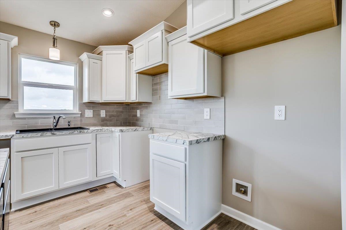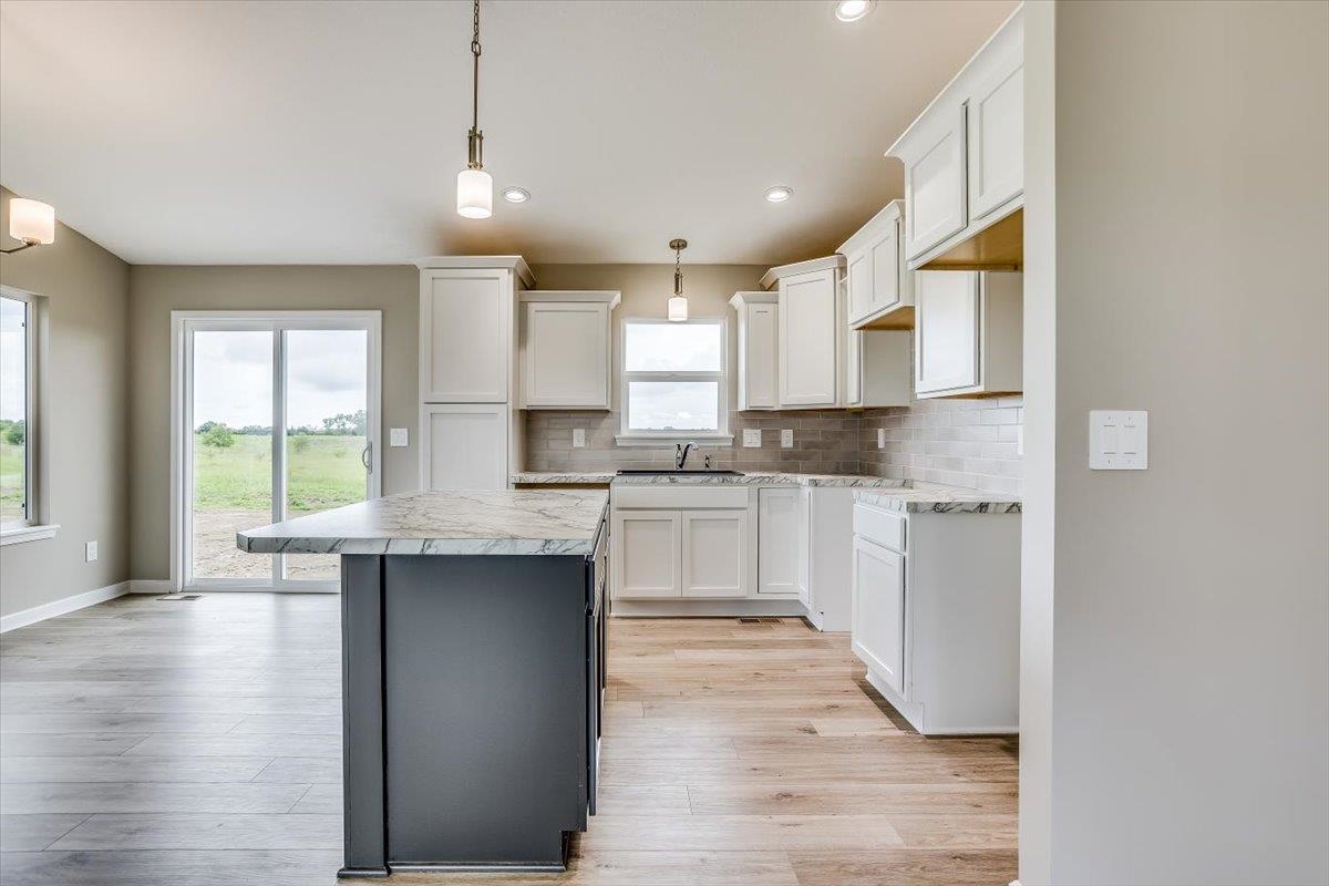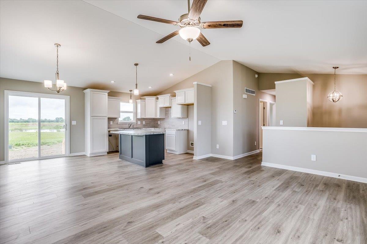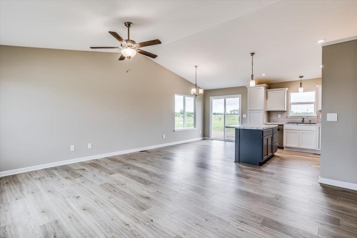 - Description: Custom home by Don Klausmeyer Construction. This very charming and popular "Austin" floor plan is a spacious, 2 BR, 2 BA ranch. The kitchen has beautiful staggered kitchen cabinets with crown, 3 car garage, cottage style windows in living room, and luxury vinyl flooring in kitchen, living room, and dining area. Laundry is on the main floor, and master bedroom has a door into the master bath, and door into the master closet! This home features James Hardie siding, facia, soffits and trim and carry a 10 year warranty.